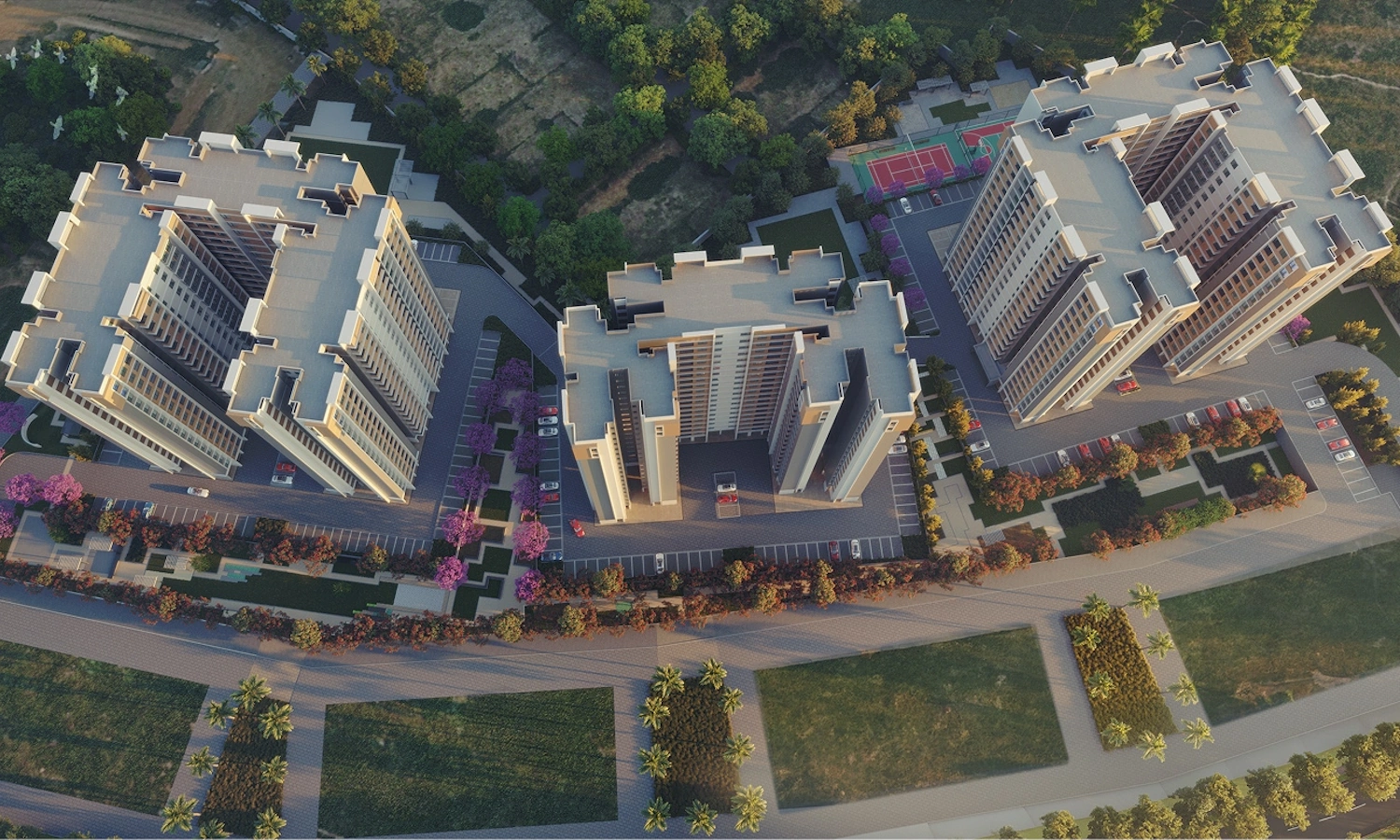 Picture yourself waking up to peaceful vistas of lush landscapes, refreshing your senses, and setting a positive tone for the day. Carefully curated amenities, including yoga and meditation spaces, a state of the art fitness center, and a welcoming swimming pool, are crafted to nurture your well being.