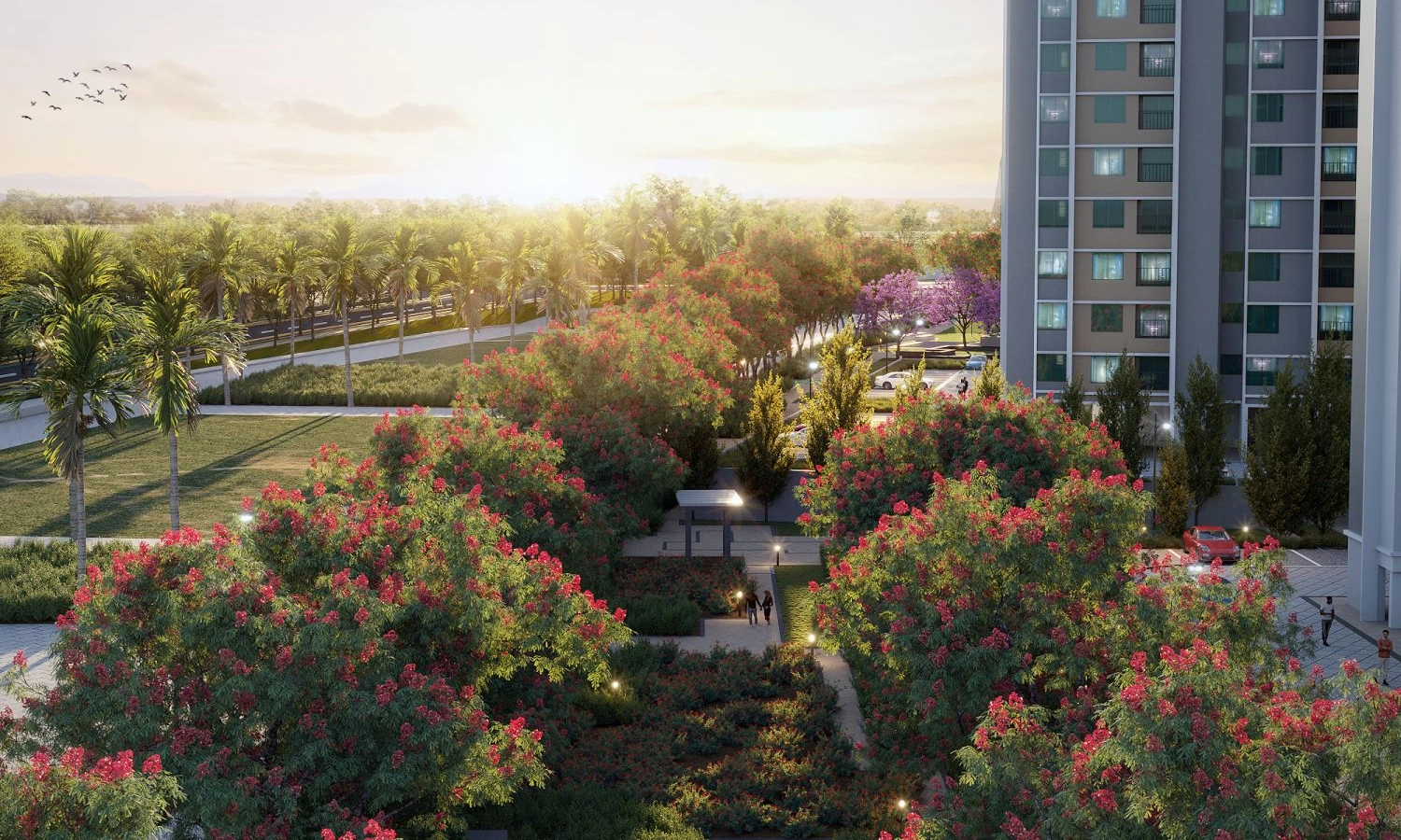 Picture yourself waking up to peaceful vistas of lush landscapes, refreshing your senses, and setting a positive tone for the day. Carefully curated amenities, including yoga and meditation spaces, a state of the art fitness center, and a welcoming swimming pool, are crafted to nurture your well being.